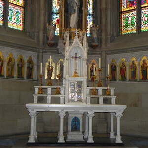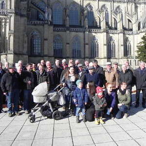 Am 10. März machten sich 38 Männer zur diesjährigen KMB-Wallfahrt auf den Weg in den Linzer Mariendom. Für manche war es nach vielen Jahren das erste Mal, wieder in ihre Firmungskirche zurückzukehren. In der Krypta des Domes wurden wir vom Dompfarrer Maximilian Strasser herzlich begrüßt und feierten dort die Hl. Messe umgeben von den Gedenktafeln an die verstorbenen Linzer Bischöfe. Der Dom ist für alle Christen Oberösterreichs die gemeinsame Kirche. Im Anschluss an die Messe waren wir erstaunt, welche Schätze in der größten Kirche Österreichs verborgen sind. Der Dom wurde vom bedeutendsten Linzer Bischof, Franz Josef Rudigier, initiiert. 1862 begann der Bau, der sich über 60 Jahre erstreckte. Der fußfitte Teil unserer Gruppe bestieg den Turm und wurde nach 400 Stufen mit einem grandiosen Ausblick über Linz und halb Österreich einschließlich Traunstein belohnt. Die zweite Hälfte konnte die eindrucksvollen Glasfenster hoch über dem Domboden besichtigen.