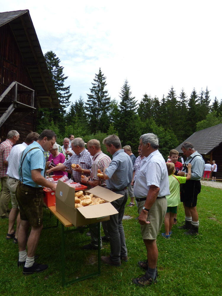 Bei herrlichem Wetter wurde die Hl. Messe in der Schrattenau gefeiert. Anschließend konnten sich die Gottesdienstbesucher mit einer Knacker, Semmel und Getränken stärken.