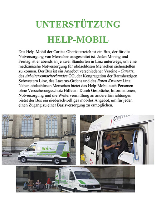 Wir - der Fachausschuss Soziales - unterstützen das Help-Mobil. Fr. Haunold von der Caritas hätte am Sonntag, 6.12. das Mobil vorgestellt - leider ist es derzeit nicht möglich.