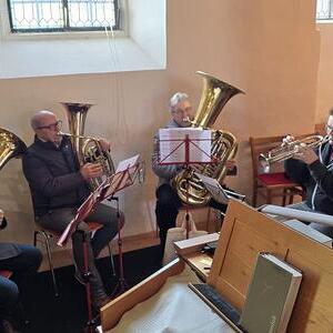 Mit dem Blechbäser-Qunitett der Ortskapelle unter der Leitung von Julian Heidelmayer.