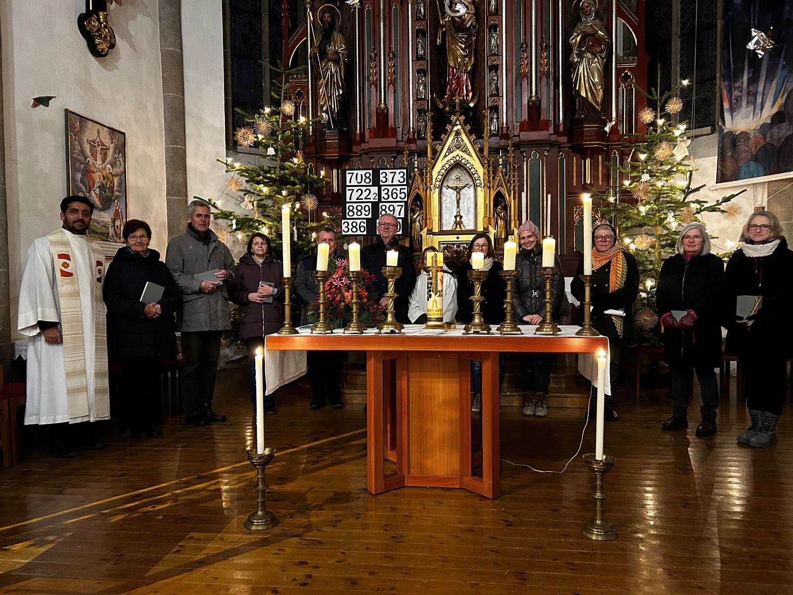 Nach dem feierlichen Einzug wurden die 10 Kerzen am Altar von den Vertretern der einzelnen Gruppen entzündet. Diese sind: