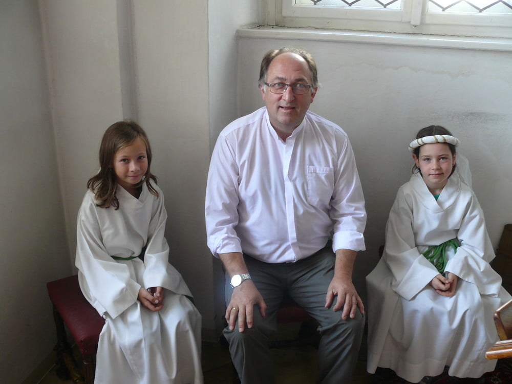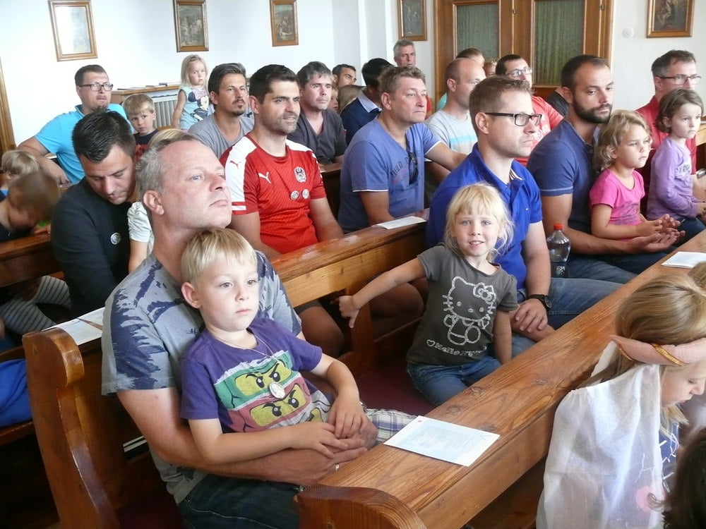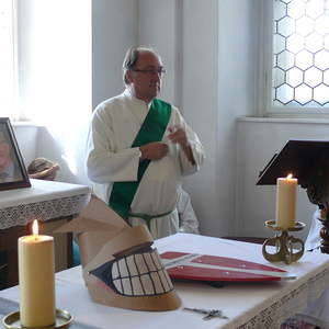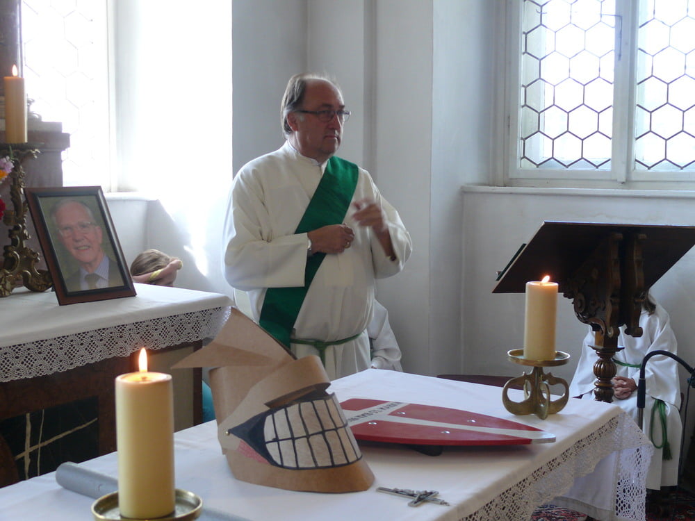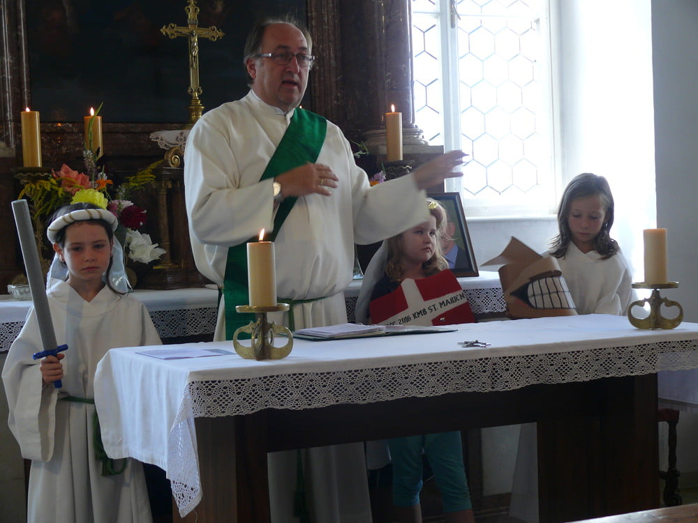 Pfarrassistent Diakon Mag. Franz Landerl ging in seiner Predigt – ausgehend aus der Bibelstelle im Epheserbrief von der Waffenrüstung Gottes aus (Schwert, Helm, Gürtel, Panzer, Schild) und versuchte das für Kinder (und Väter) anschaulich zu verdeutliche, was das heißen könnte.