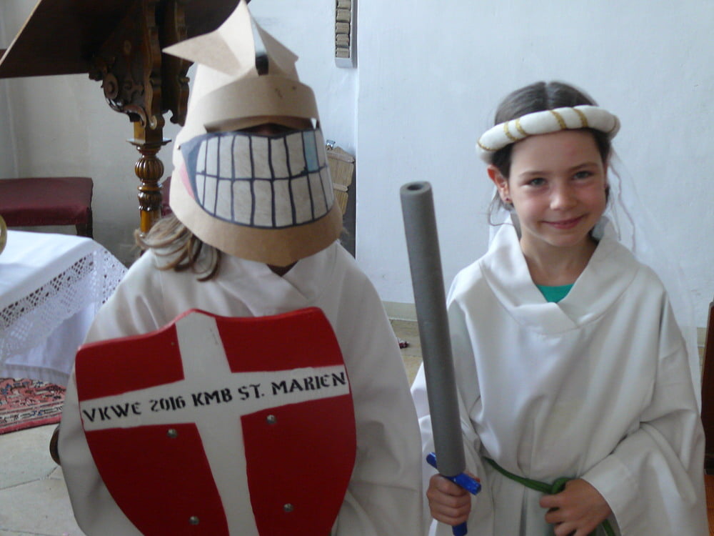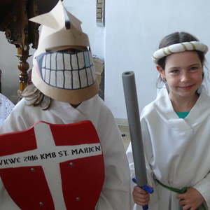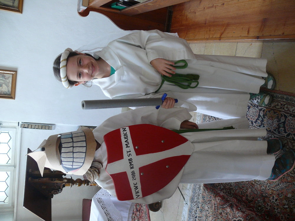 Im Vorfeld wurde ja gemeinsam ein Schild gezimmert, ein Helm gebastelt und die Mädchen erhielten den „Burgfräulienkranz“.