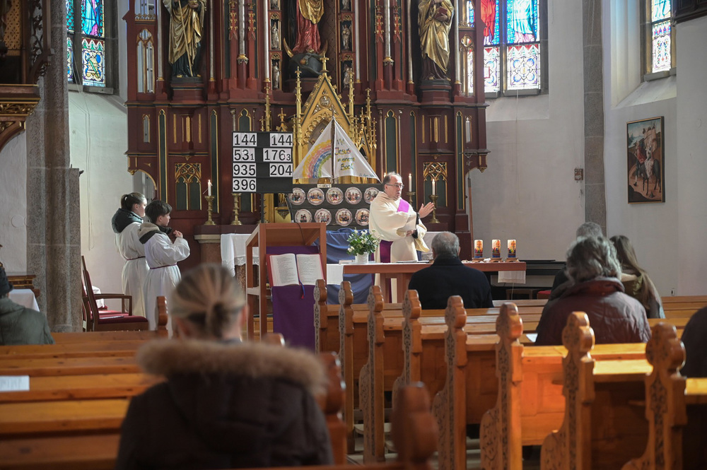 Am Wochenende wurden die letzten Gottesdienste vor der Corona-Pause abgehalten. Die wenigen Mitfeiernden haben sich, so wie es empfohlen war, gut im Kirchenraum verteilt.