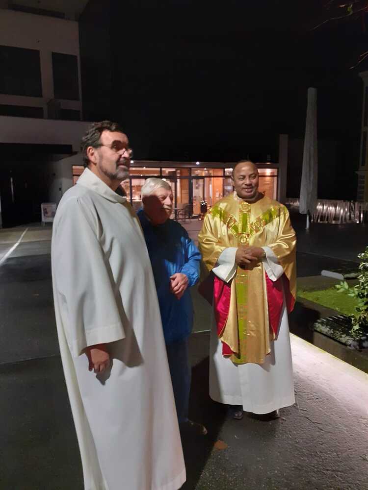 Gemeinsam mit Pfarrassistent Mag Helmut Außerwöger und Kurat John Ekeogu zogen viele Kinder mit ihren Laternen in die Kirche ein.