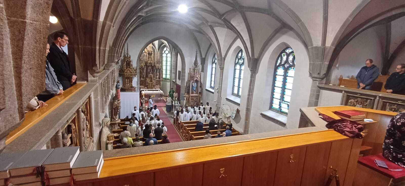 Am 3.8.2025 waren in unserer Pfarrkirche über 40 Ministrant*innen aus Bayern zu Gast, welche einige Tage in St. Oswald verbrachten. Gemeinsam mit dem Mitmach-Chor und einer Delegation des Kinderchors wurde die 9-Uhr-Messe mit ihrem Kaplan (im bayrischen Dialekt) sowie Pfarrer Etzlstorfer gefeiert.