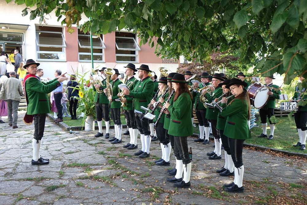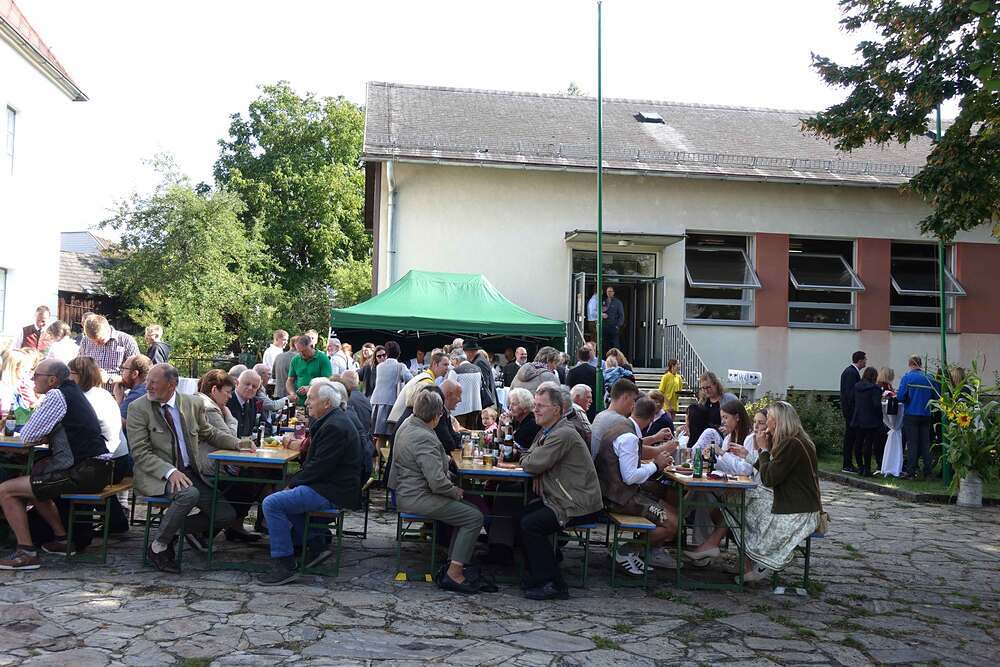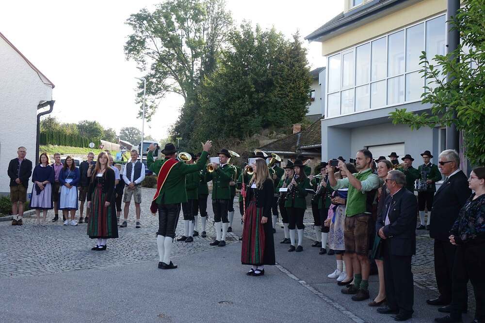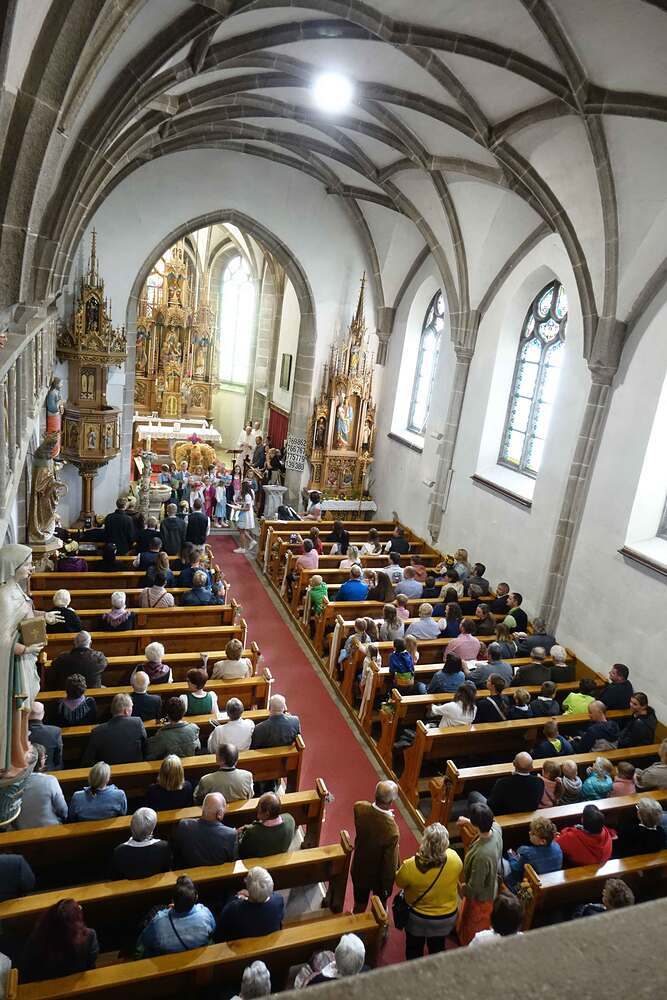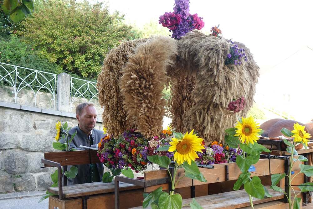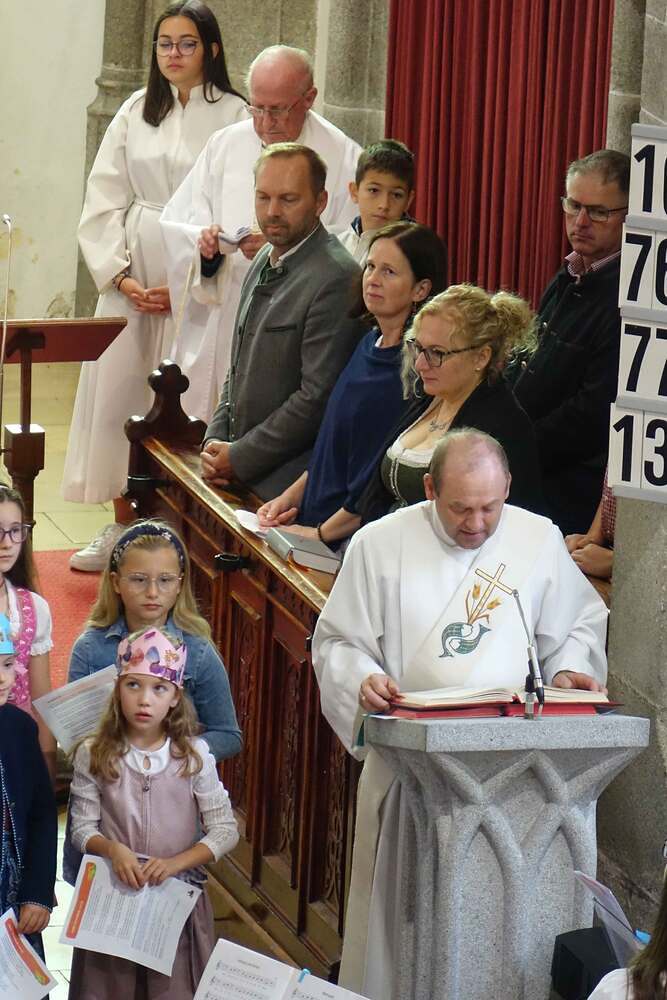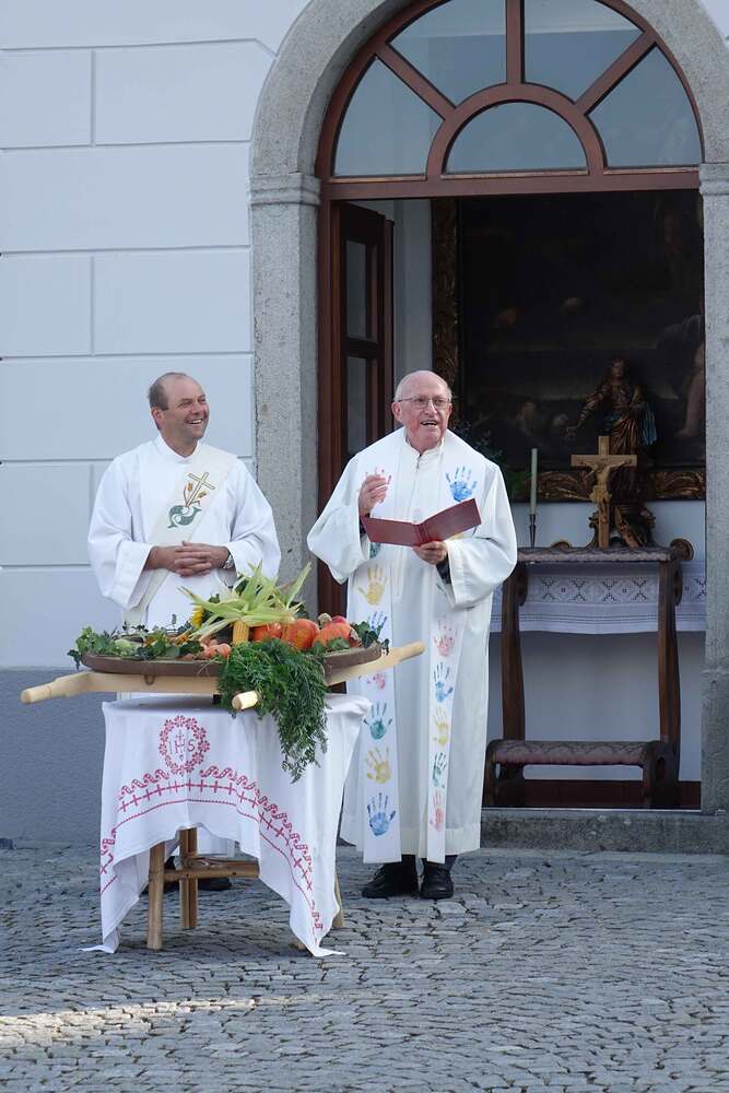 Begleitet von der Musikkapelle, den Goldhaubenfrauen und der Pfarrbevölkerung wurde die Erntekrone und die Erntegaben in einer Prozession zur Kirche gebracht. In der Kirche wartete bereits Edith Greindl mit dem Kindechor, die den Gottesdienst mitgestalteten. Nach dem Erntedankgottesdienst, wurde die Pfarrbevölkerung zum Pfarrfrühschoppen eingeladen. Es gab Weißwürste, Brezen und Bauernkrapfen. Auch an verschiedenen Getränken mangelte es nicht. So klang das Fest des Dankes aus.