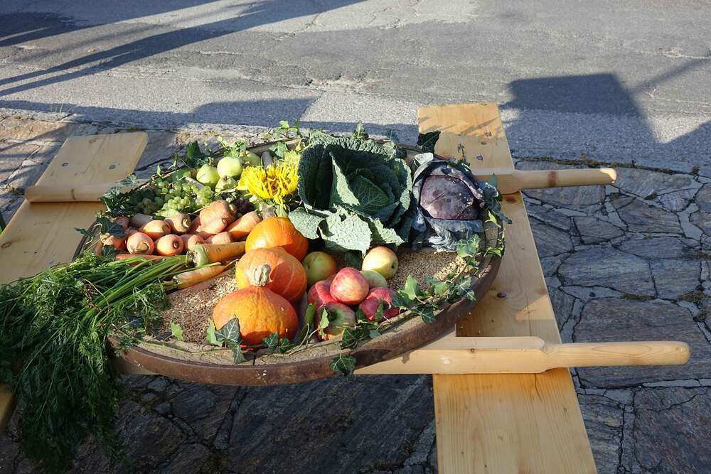 Bauern bringen Gaben zum Altar