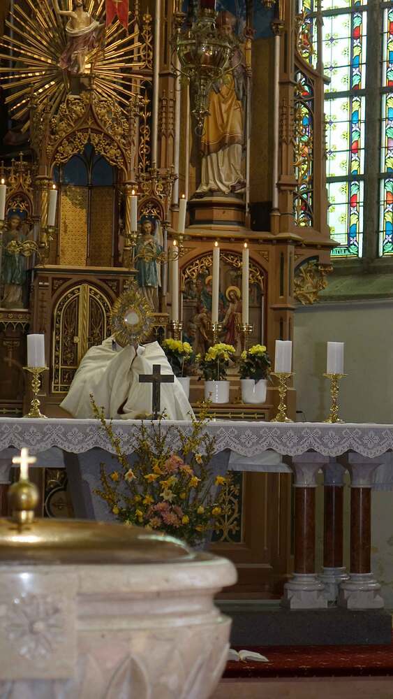 Den eucharistischen Segen und die Einsetzung des Allerheiligsten wurden von Diakon Andreas Neumüller durchgeführt.