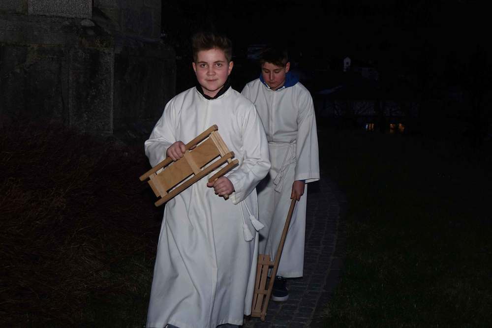 Entzünden der Osterkerze vor dem Einzug in die Kirche.