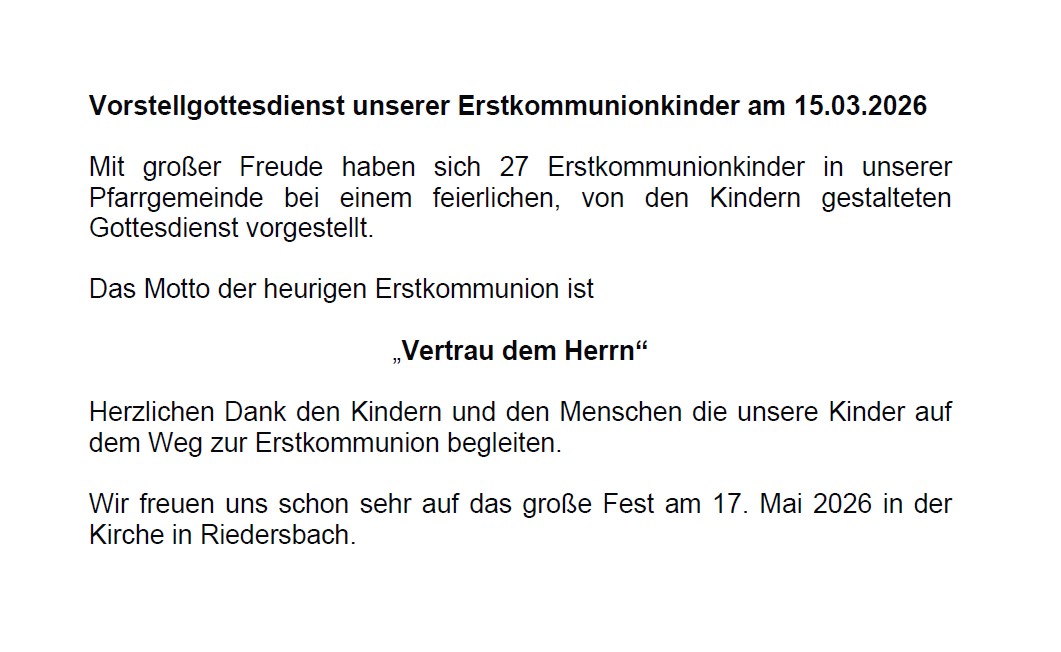 Vorstellgottesdienst der Erstkommunionkinder 2026 mehr: Vorstellgottesdienst der Erstkommunionkinder 2026