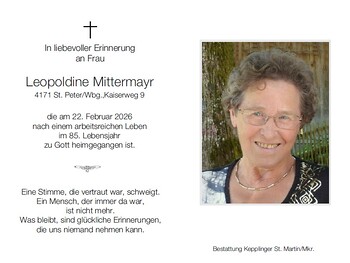 „In Gottes Händen geborgen – in unseren Herzen unvergessen.“ In liebevoller Erinnerung an die Verstorbenen aus vergangenen Jahren - die Gedenkseite der Pfarre St. Peter/Wbg.
