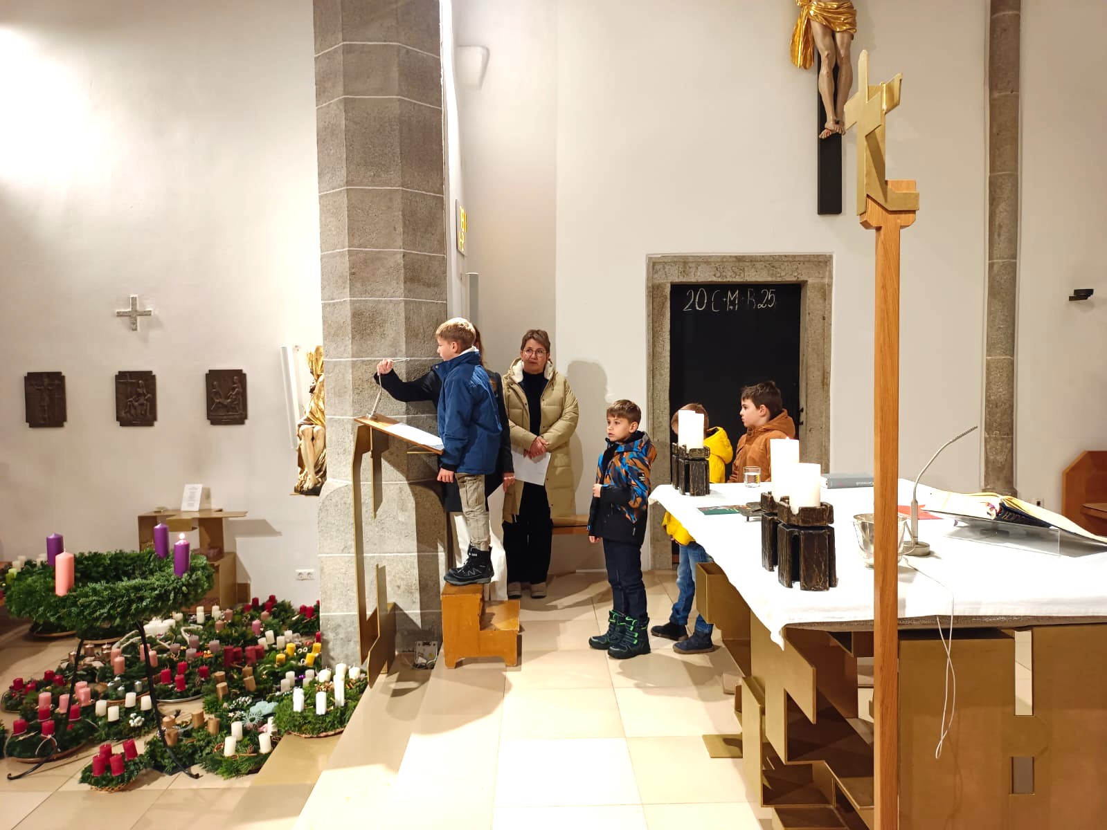 Religionslehrerin Marisa Kainberger umrahmte mit den Volksschüler*innen den schön getexteten Gottesdienst mit rhythmischen Liedern, die kräftig und beherzt gesungen wurden. Ein herzlicher Dank gebührt allen.