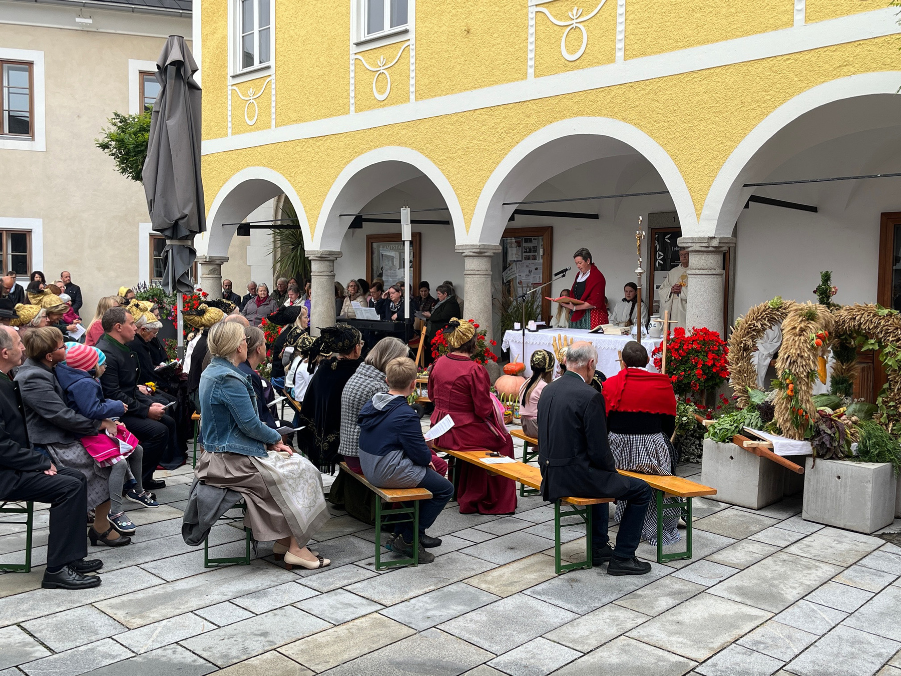 Festlich umrahmt von zahlreichen Vereinen haben wir Gott für die gute Ernte, aber auch für unsere Arbeitsplätze und für den Frieden in unserem Land, gedankt.