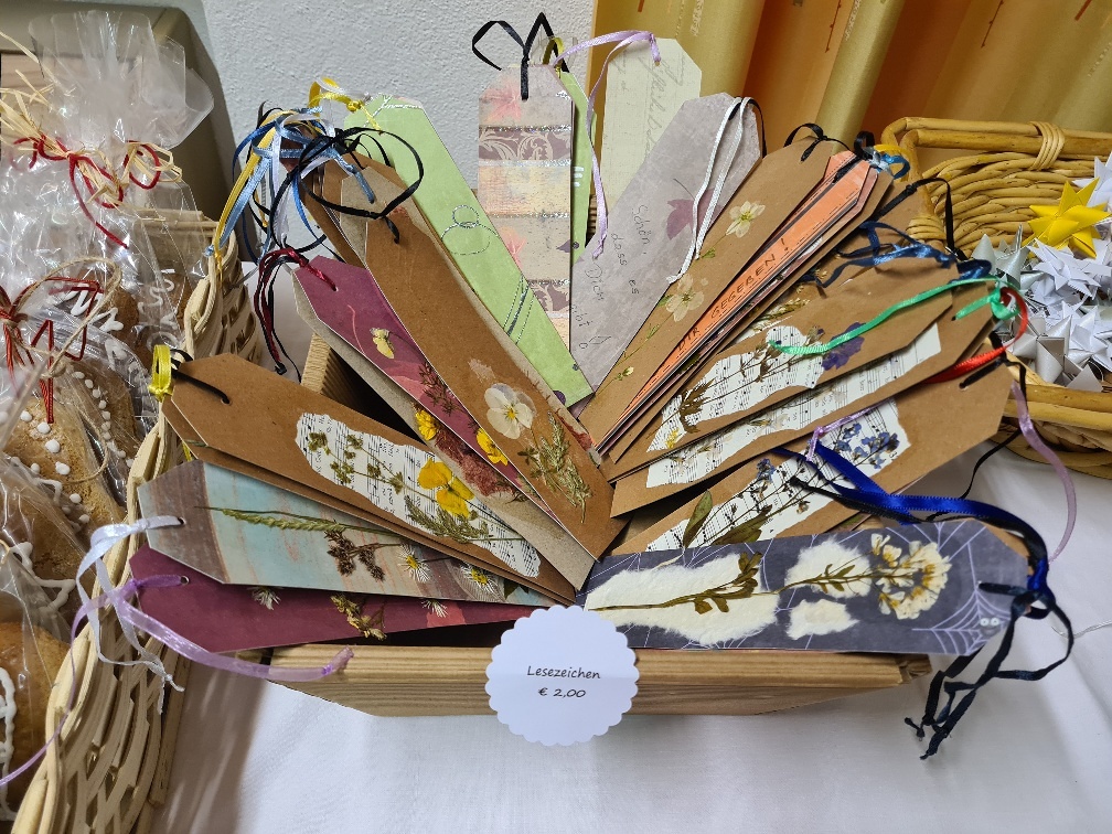 Neben den kulinarischen Köstlichkeiten gab es aber auch schöne Bastelstücke zu erwerben, die von der Bastelgruppe rund um Karoline Pröll, in stundenlanger Arbeit, liebevoll geschaffen wurden. Ebenfalls mit demselben Zweck, durch den Kauf dieser Arbeiten, Menschen in Not zu unterstützen.