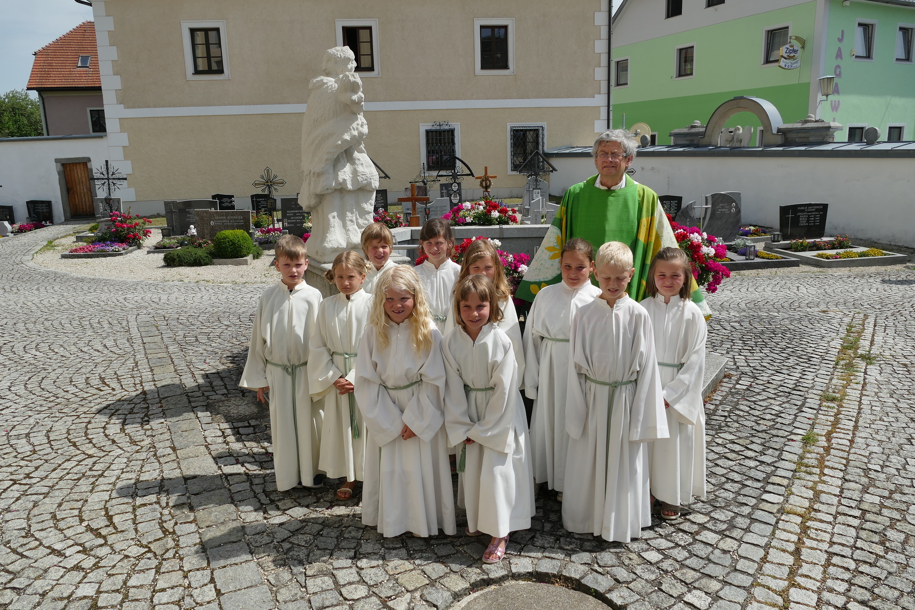 Sieben Mädchen und drei Buben taten am 30. Juni 2024 beim 10.00 Uhr-Gottesdienst zum ersten Mal ihren Dienst und wurden dabei in die Schar der Sarleinsbacher MinistrantInnen aufgenommen. Ihre Vorstellung übernahmen sie dabei gleich selbst. Sie haben die Sache gut gemacht.