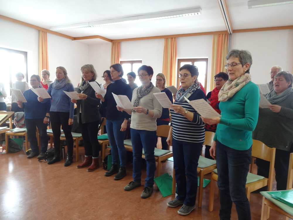 Frau Elisabeth Watzl, Gesangspädagogin, leitete diesen Tag gemeinsam mit unserer Chorleiterin Jutta Indra-Jöchtl. Mit schwungvollen Einsing- Bewegungs- und Massageübungen begannen wir mit der Osterliteratur, Teile der geplanten „Missa Brevis in C" von W.A. Mozart und dem „Händel-Halleluja" zu wiederholen und gesangtechnisch zu vertiefen. Aber auch neue Chorliteratur stand am Programm.