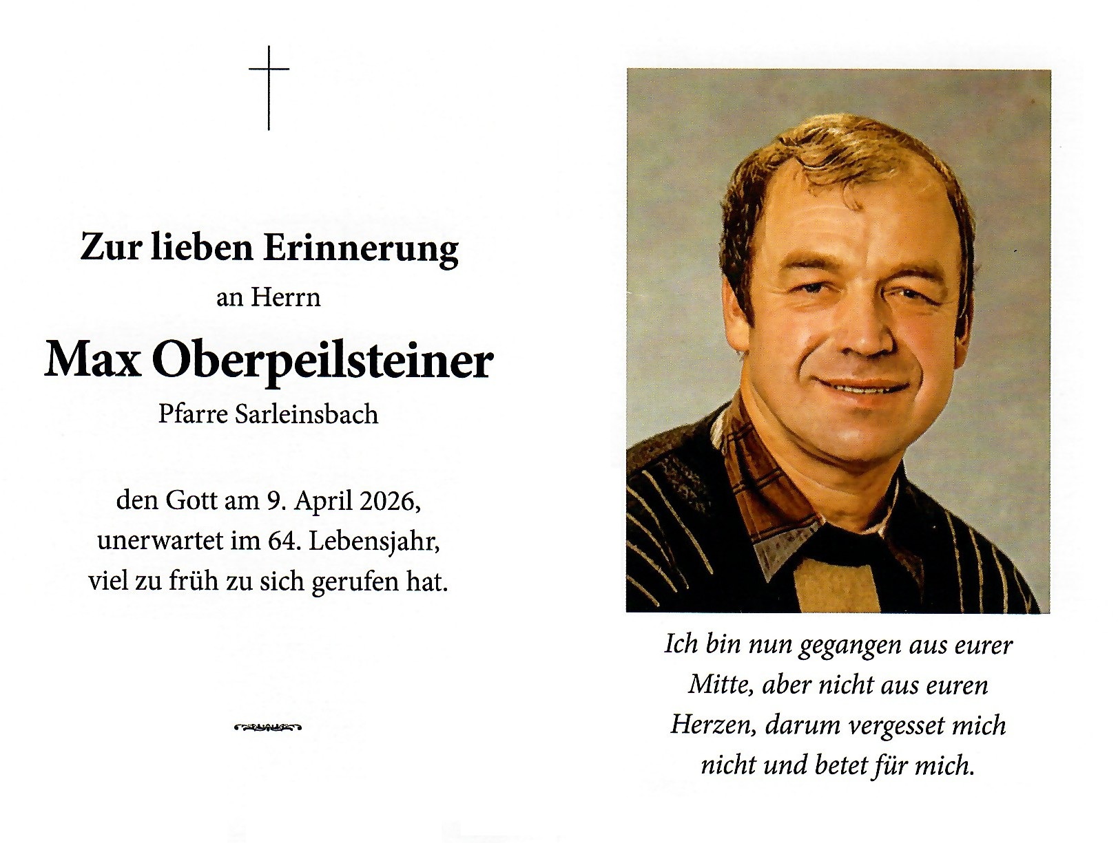 09.04.2026: Maximilian Oberpeilsteiner, Stadlgasse 3, 64. Lj.