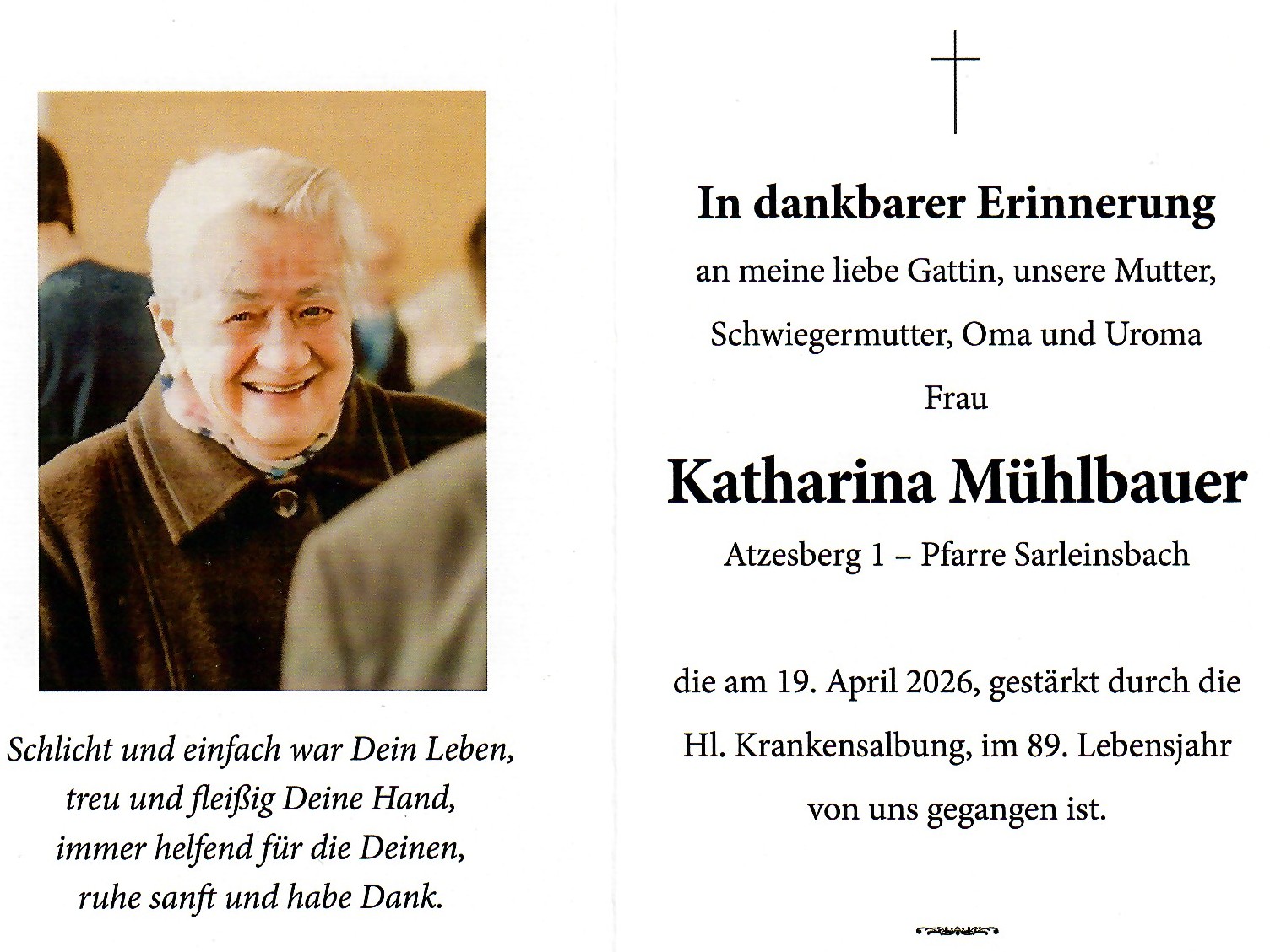 19.04.2026: Katharina Mühlbauer, Atzesberg 1, 89. Lj.