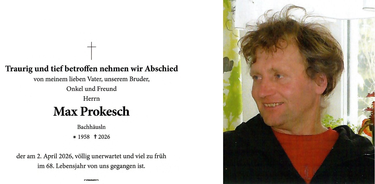 02.04.2026: Max Prokesch, Poppen 11 (Bachhäusln), 68.Lj.