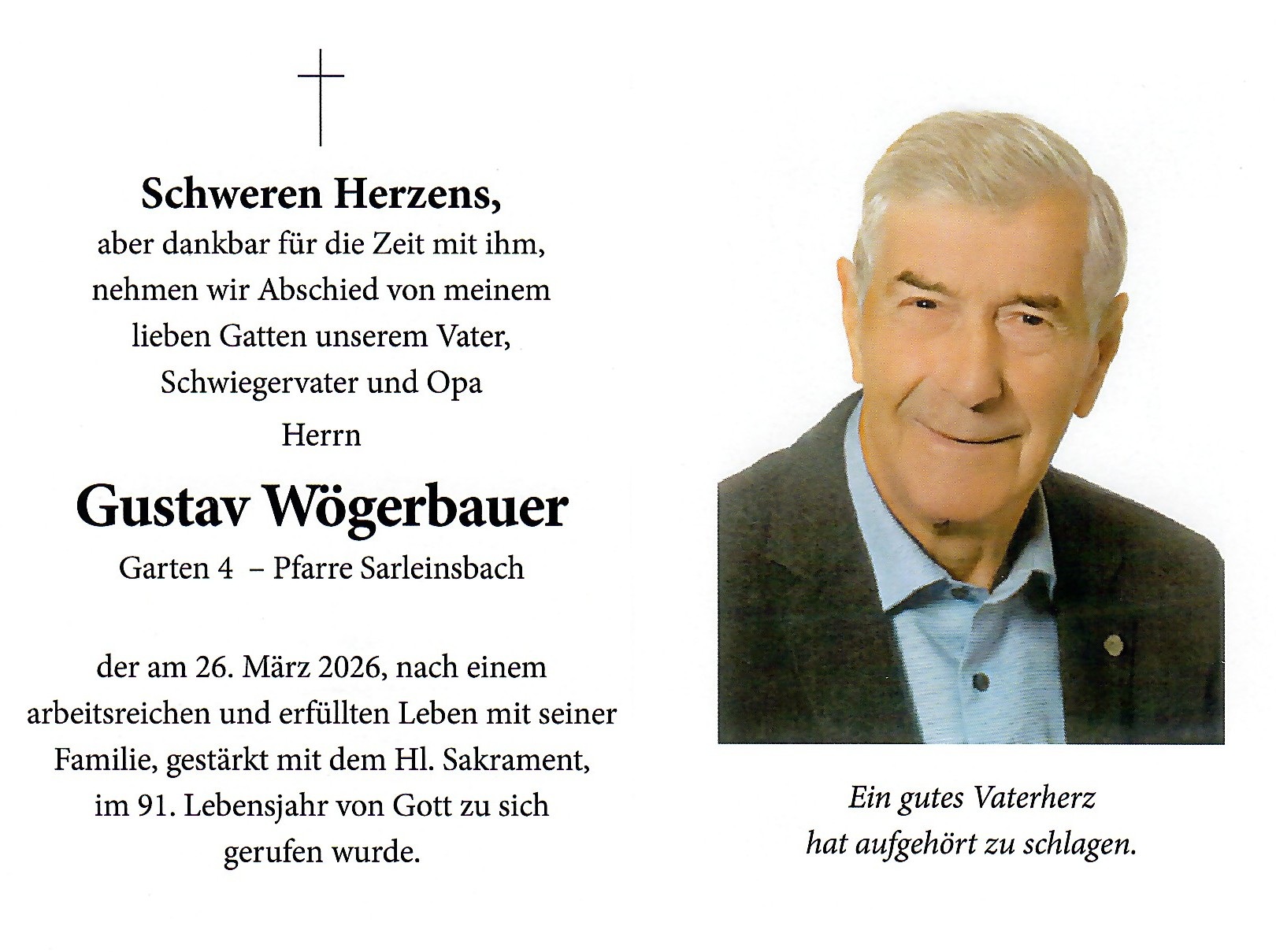 26.03.2026: Gustav Wögerbauer, Garten 4, 91. Lj.