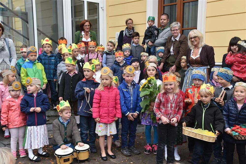 Zu Beginn des Jahres feiert der Kindergarten bereits beim Erntedankfest der Pfarre mit.