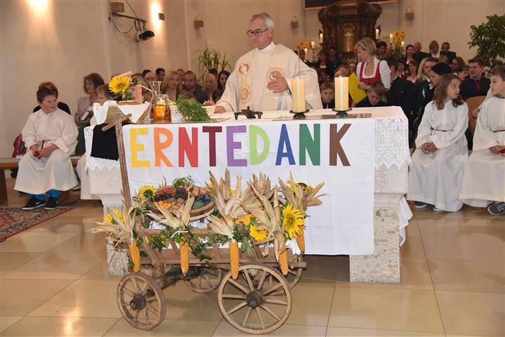 Am Sonntag, 4. Oktober, feierten wir das Erntedankfest - mit der Beteiligung sehr vieler Gruppen: Bauernschaft, Landjugend, Kindergarten, Jungschar, Asylwerber, Goldhaubenfrauen. Ein Fest der Dankbarkeit für Gott und die Mitmenschen