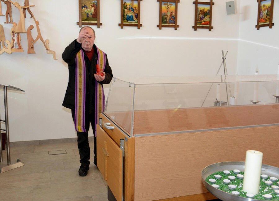 Segnung des Kreuzweges von Frau Aloisia Kühböck im Friedhofsgebäude