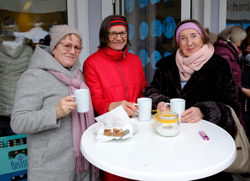 Bei den aufgestellten Stehtischen ließen sich die zahlreichen Besucher die selbstgemachten Mehlspeisen mit einer Tasse Kaffee, Tee oder Glühwein, oder einem Bierchen gut schmecken.