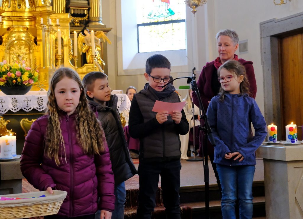 Am Sonntag, den 15. März feierten sie mit der Religionslehrerin den Vorstellungsgottedienst in der Pfarrkirche. Gleich zu Beginn stellten sich die Kinder mit ihren Namen vor. Die Vorfreude war den Kindern anzusehen und auch spürbar. Mit Liedern, Texten und Gebeten wurde von ihnen der Gottesdienst mitgestaltet.