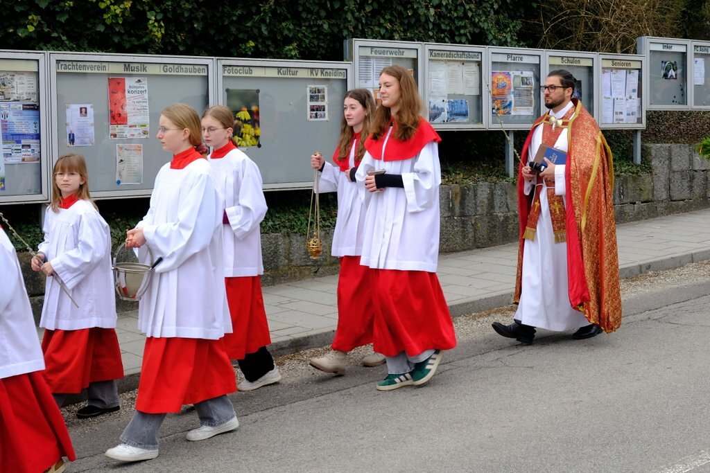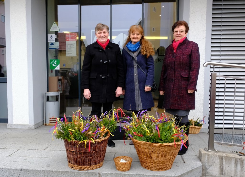 Von den Goldhaubenfrauen wurden sowohl bei der Vorabendmesse am Samstag, als auch vor der Palmprozession Palmbuschen zum Verkauf angeboten. Der Reinerlös dieser Aktion wird von der Goldhaubengruppe für soziale Zwecke in der Pfarrgemeinde gespendet.