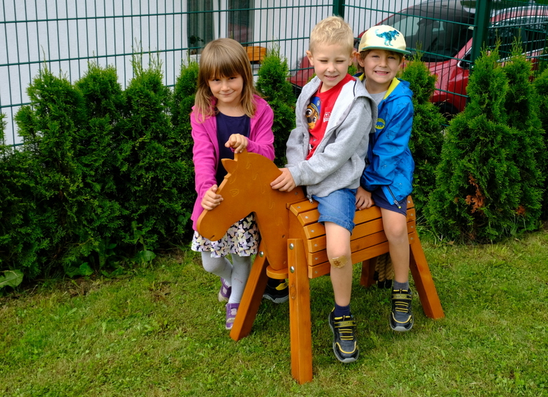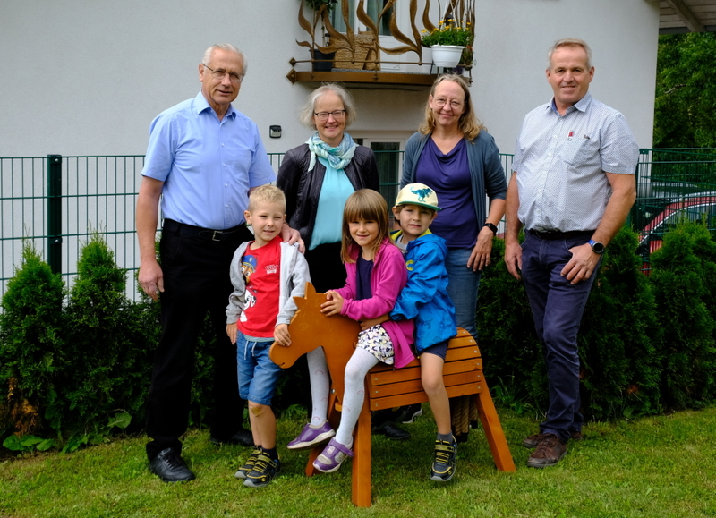 am 11. Juni 2022 wurde ein Gutschein für ein Spielgerät im Garten übergeben. Nach längerer Lieferzeit konnte nun dieser Gutschein eingelöst werden. Das Team des Kindergartens wünschte sich ein Holzpferd für den Garten. Am Freitag, 08. Juli konnte dieses nun übergeben werden.