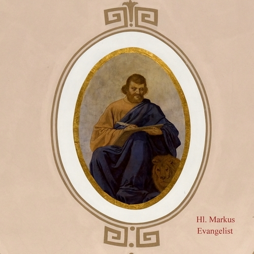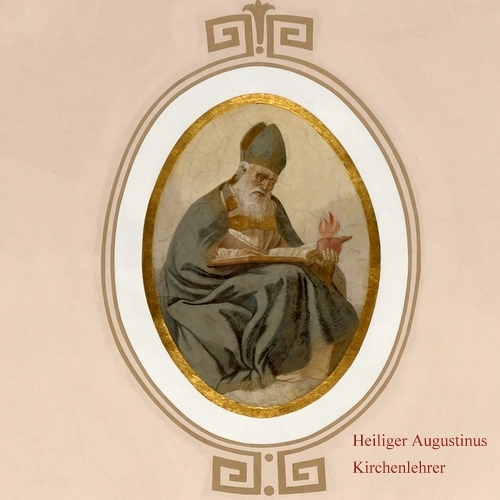 Der Heilige Bischof Augustinus ist dargestellt mit einem brennenden Herz, der Heilige Ambrosius mit einem Bienenkorb (Patron der Imker), der Heilige Papst Gregor der Große mit der Tiara und der Heilige Hieronimus ist dargestellt mit dem Kardinalshut.