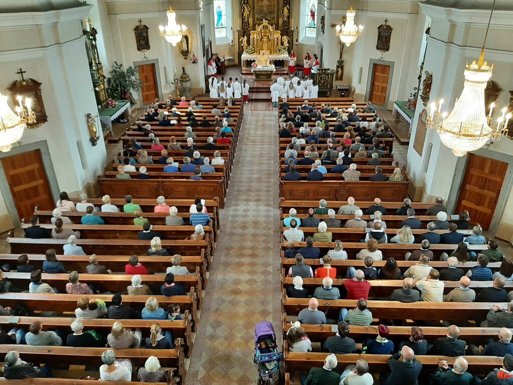Dieser Dankgottesdienst wurde von unserem Kirchenchor, dem Kinderchor und einem Hornensemble umrahmt. Viele Leute aus der Pfarrbevölkerung sind der Einladung gefolgt, unsere Pfarrkirche war gut gefüllt.