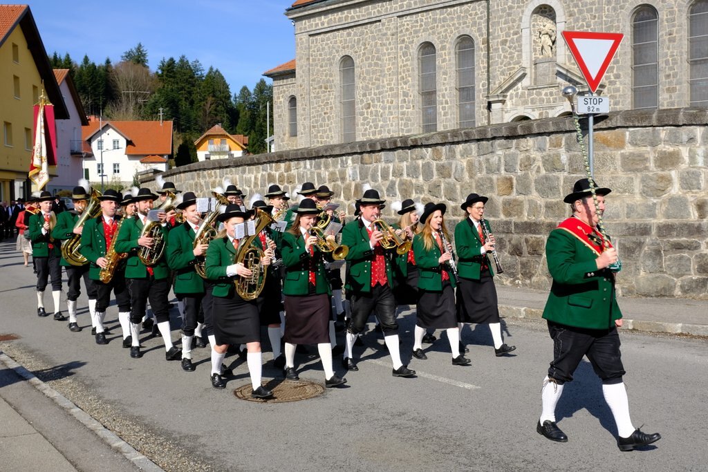 Der Zimmererverein Schardenberg feierte am Sonntag, 17. März 2024 beim Pfarrgottesdienst die schon traditionelle Josefimesse zu Ehren des Patrons der Zimmererleute. Die Zimmerer wurden von der Blasmusikkapelle Schardenberg zur Kirche und anschließend wieder zurück zum Kirchenwirt begleitet. Die Hl. Messe wurde von Kooperator Didacus Ilo zelebriert und von der Musikkapelle musikalisch mitgestaltet.