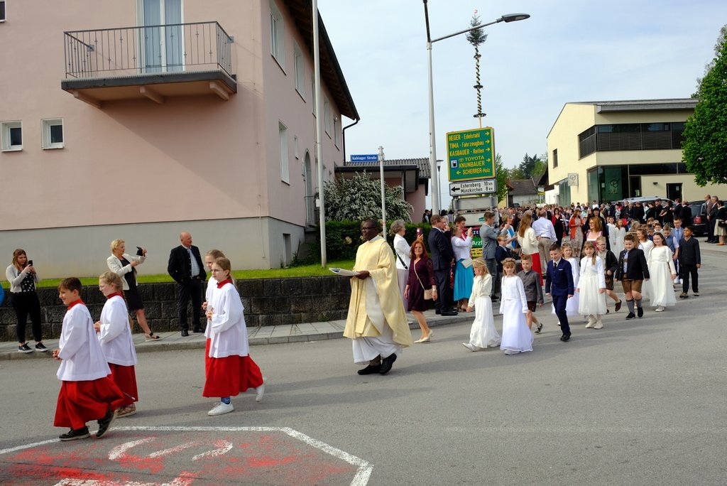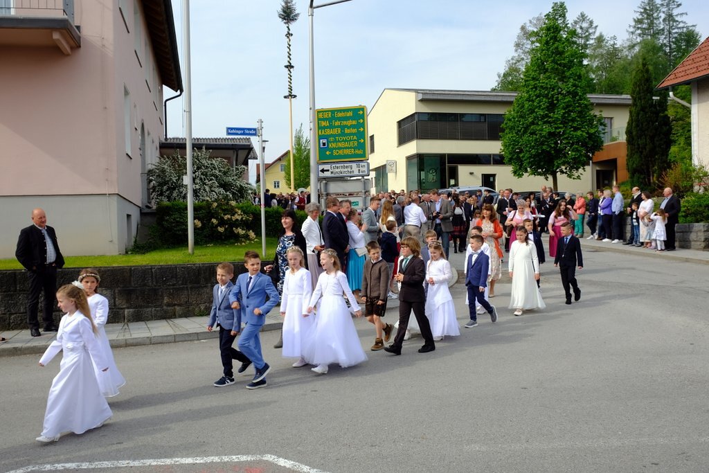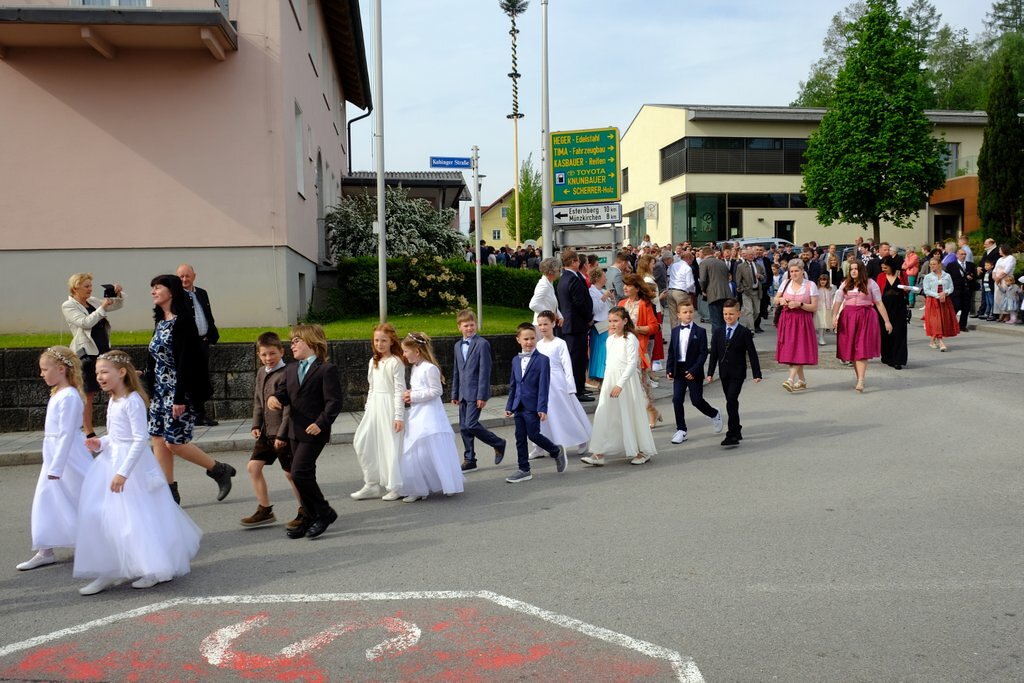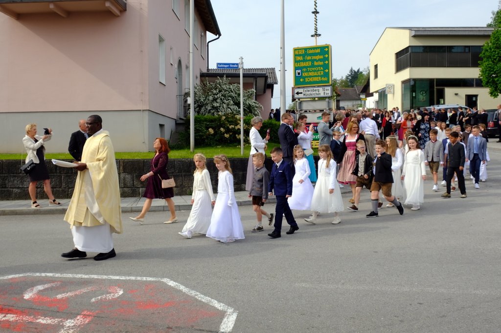 Die Pfarrgemeinde freut sich mit den Kindern und hat Ihnen als Geschenk ein Kreuz überreicht. Wir wünschen den Kindern, dass mit dieser Ersten Heiligen Kommunion viele weitere Kommunionen folgen werden.