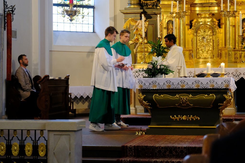 Der Dankgottesdienst in der Pfarrkirche wurde von Fr. Joseph Dekruz mit Fr. Jude Joby zelebriert und musikalisch von unseem Kirchenchor mitgestaltet. Nach der Predigt segnete Fr. Joseph Decruz die Paare. Gott möge den Ehebund der Paare weiterhin mit seinem Segen begleiten.