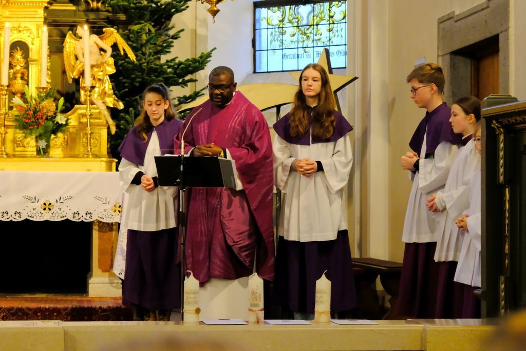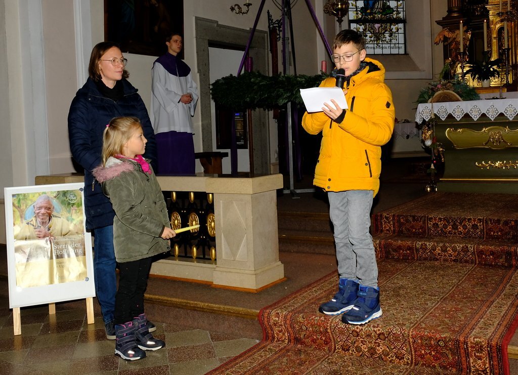 Wir zünden heute zwei Kerzen am Adventkranz an.