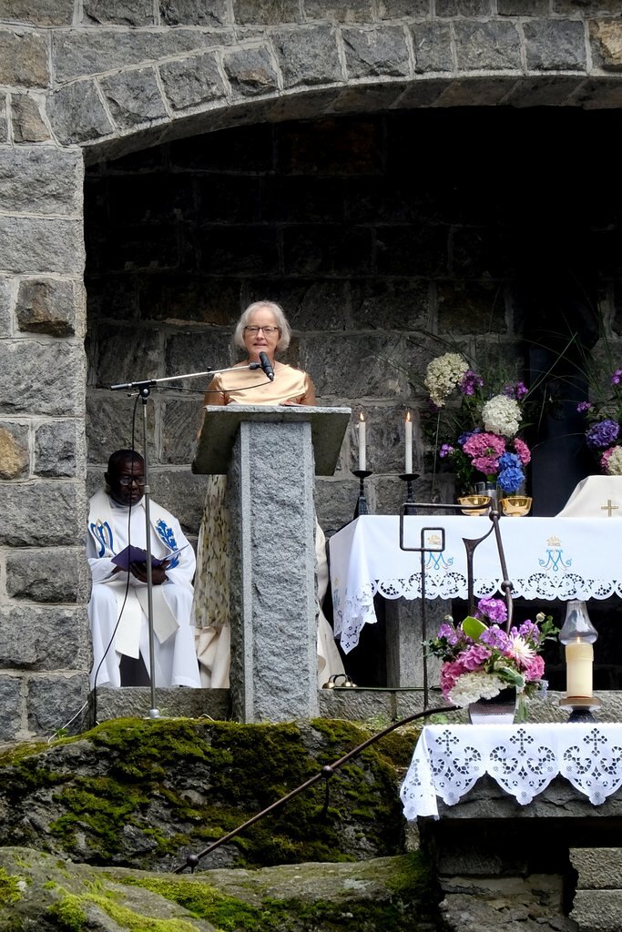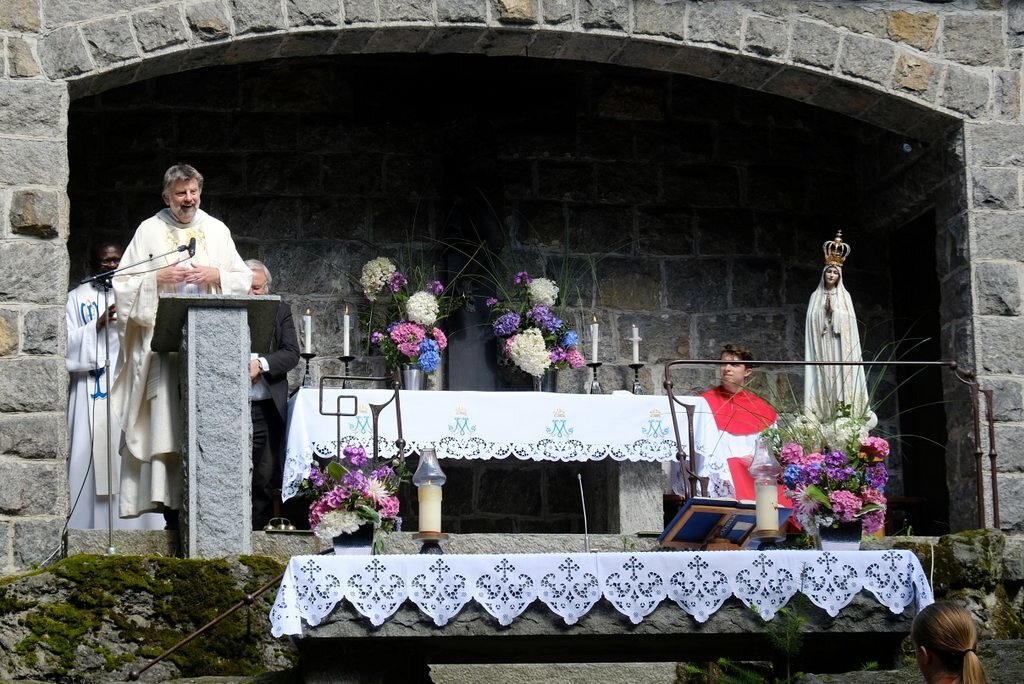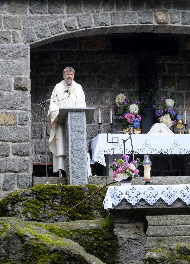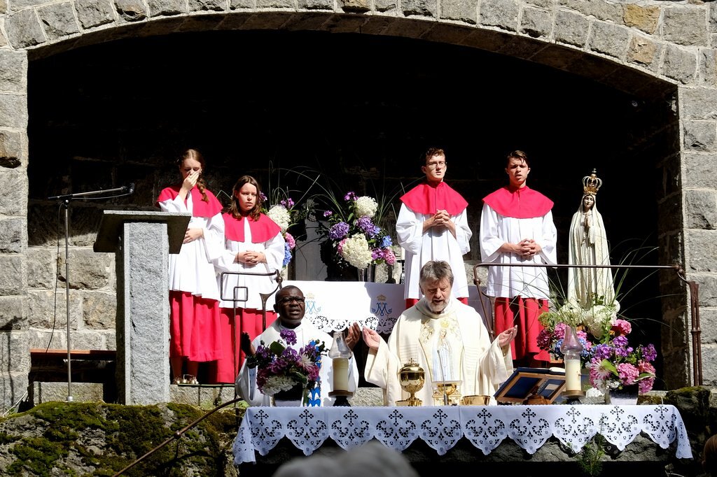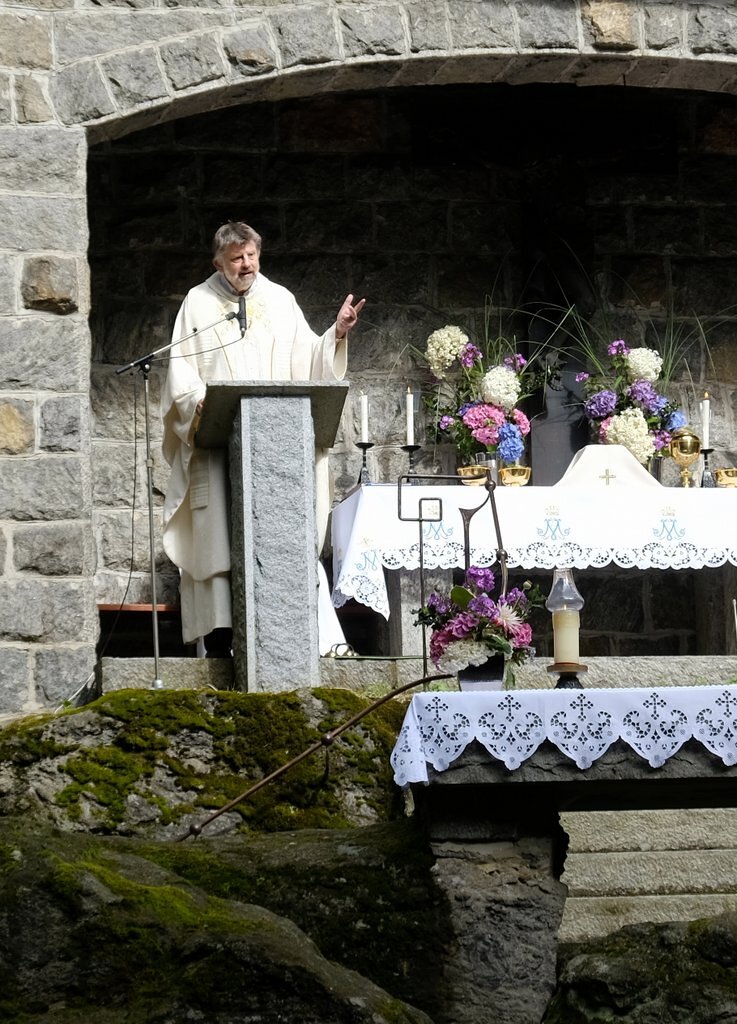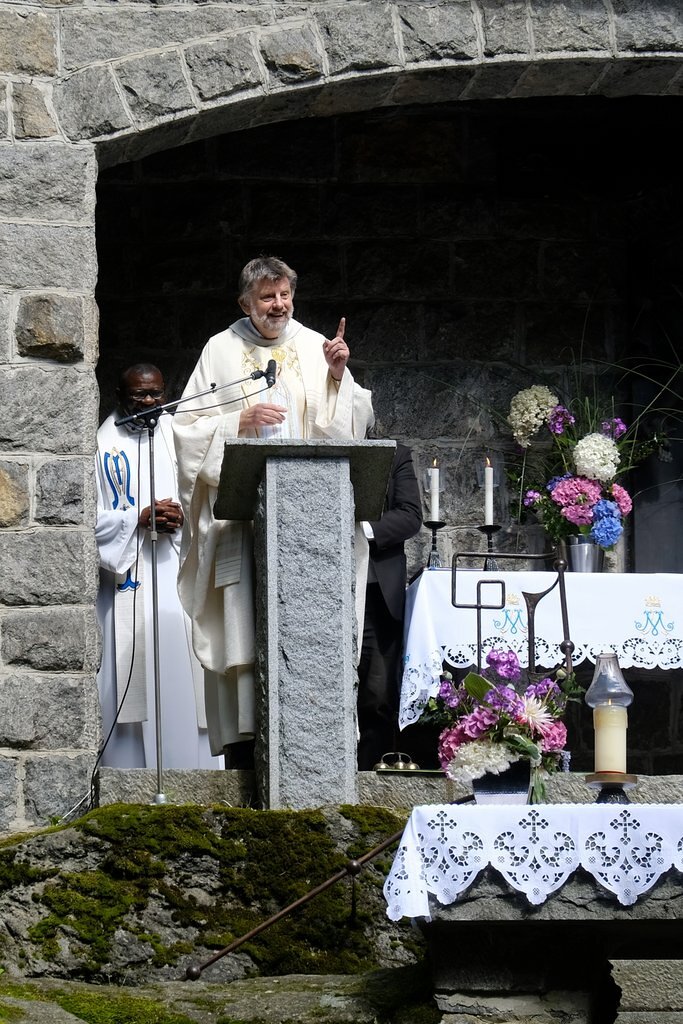 Bei gutem Wetter feierten viele Wallfahrer die Pilgermesse am Freialtar mit. Maria, die Königin des Friedens. Pfarrer Sperker erwähnte in seiner Predigt die vielen Kriegsgebiete und Krisenherde auf der Welt und predigte für den Frieden in Geschwisterlichkeit. In den 18 Fürbitten wurde für den Frieden in den verschiedenen Ländern gebetet.