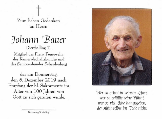 Johann Bauer, gest. 05.12.2019 im 101. Lebensjahr