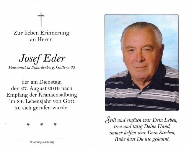 Josef Eder, gest. 27.08.2019 im 84. Lebensjahr