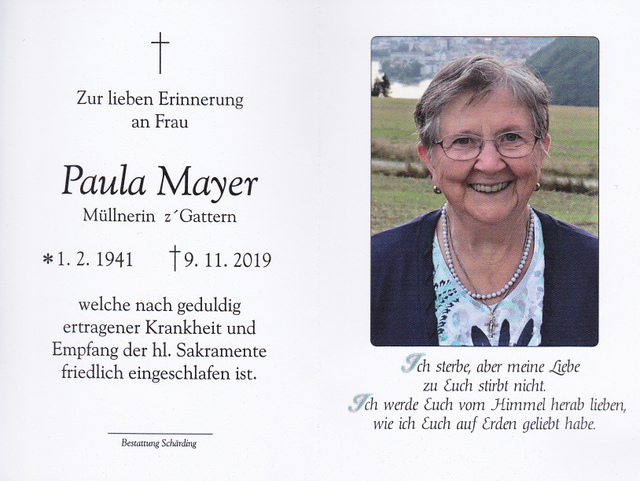 Paula Mayer, gest. 09.11.2019 im 79. Lebensjahr