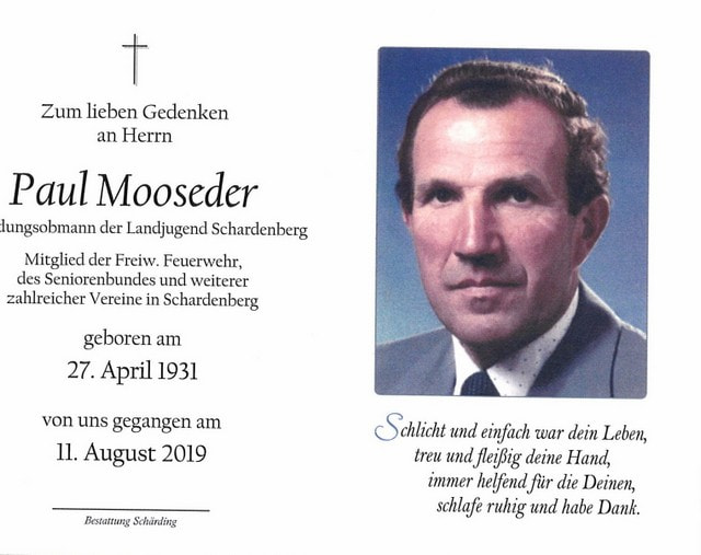 Paul Mooseder, gest. 11.08.2019 im 89. Lebensjahr