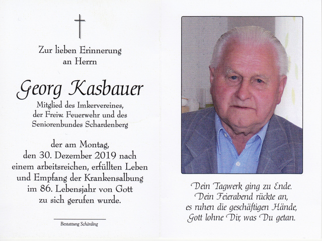 Georg Kasbauer, gest. 30.12.2019 im 86. Lebensjahr