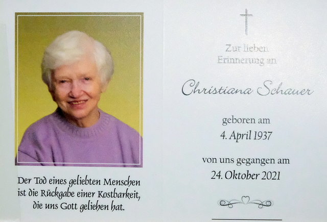 Christiane Schauer, gest. 24.10.2021 im 85. Lebensjahr