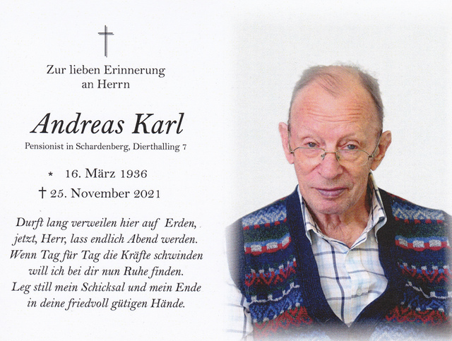 Andreas Karl, gest. 25.11.2021 im 86. Lebensjahr