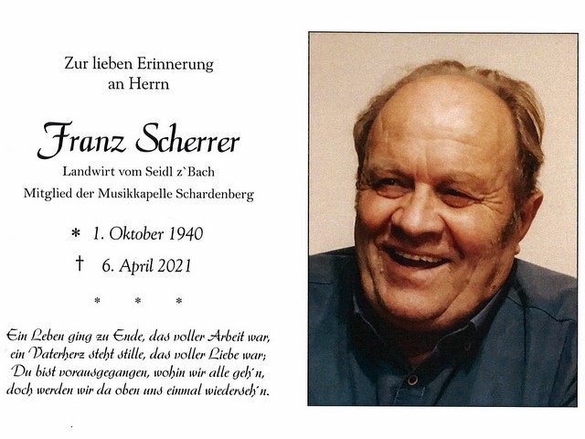 Franz Scherrer gest. 06.04.2021 im 81. Lebensjahr