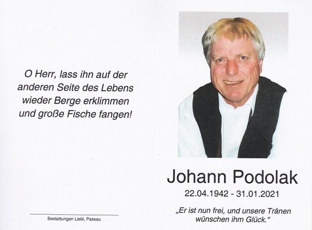 Johann Podolak, gest. 31.01.2021 im 79. Lebensjahr