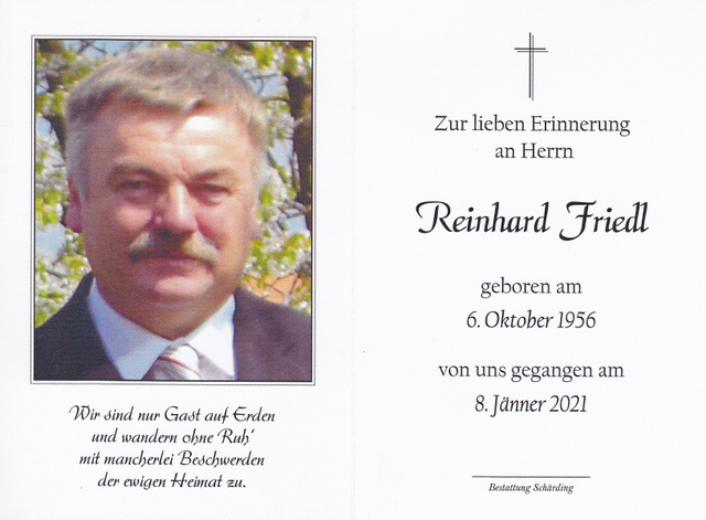Reinhard Friedl gest. 08.01.2021 im 65. Lebensjahr