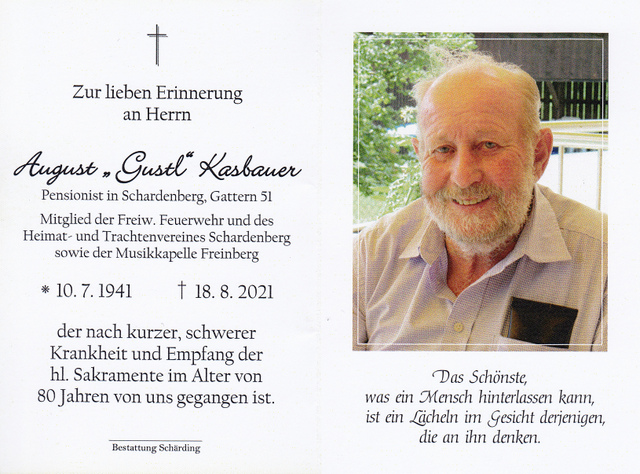 August Kasbauer, gest. 18.08.2021 im 80. Lebensjahr
